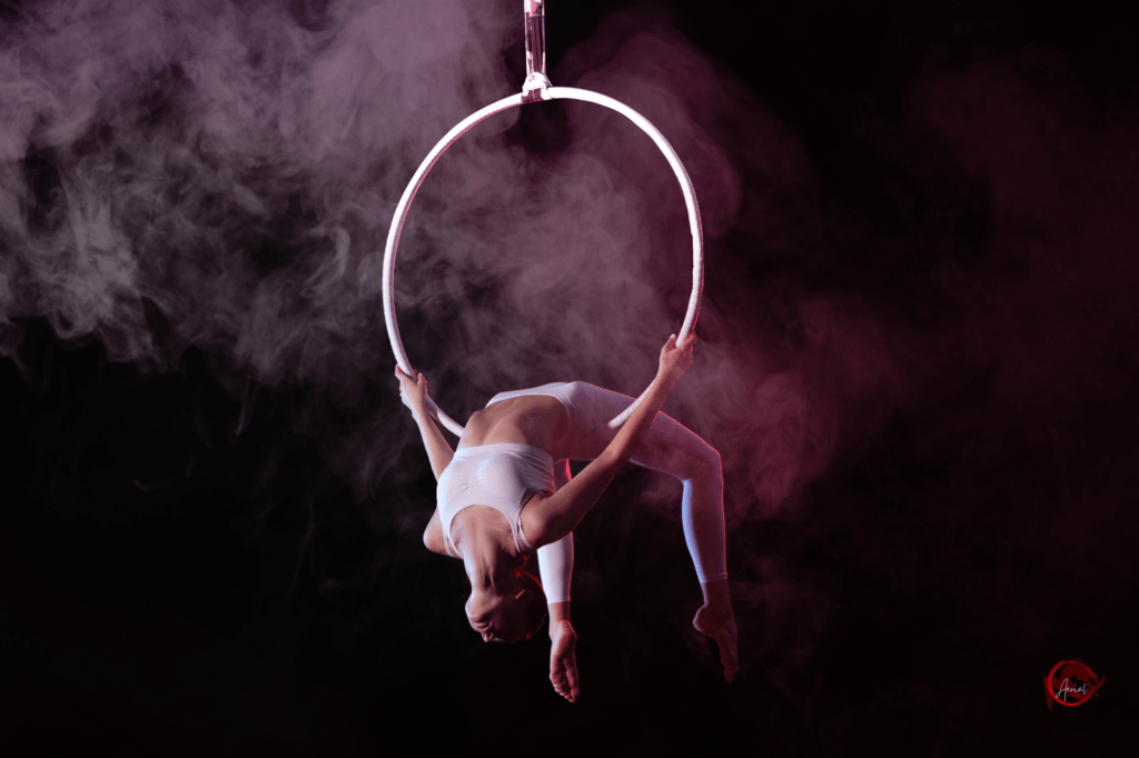 Prepararsi fisicamente e mentalmente per affrontare mosse avanzate sull’Aerial Hoop richiede impegno, pazienza e dedizione. Concentrati sulla costruzione di una base solida di forza e flessibilità, pratica costante e progressiva, visualizzazione e mental training, coraggio e determinazione, e una mentalità aperta e positiva. Con il giusto approccio e la giusta attitudine, sei pronto a superare ogni sfida e a raggiungere nuove vette nel tuo percorso di apprendimento sull’Aerial Hoop. Buon volo!